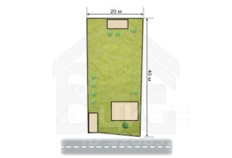 Площадь: 8 соток (40м x 20м), форма — правильный прямоугольник.