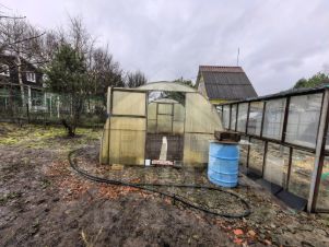 На участке есть: Небольшая банька, дровник, гараж, хозяйственное строение, плодовые деревья, две теплицы.