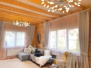 Дом построен по комбинированной технологии: 1-й этаж возведен из бруса, а 2-й этаж — по каркасной технологии.