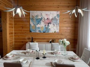 Столовая с большим раздвижным столом, за которым с комфортом разместятся до 15 человек.