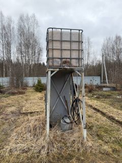 Рядом пруд, до него проведена труба (можно закачивать воду в куб для полива или в качестве душа).