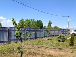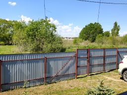 На участке расположен гостевой домик с 2-мя комнатами, бытовка для инвентаря. Участок ровный, правильной формы, ухожен, огорожен забором из гофролиста.