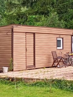 Участок- 10 соток. ( у соседей наш участок с древних времен-еще 50 см)На участке есть площадка под 2 авто и утепленный вагончик (сарай с проживанием. летом живет рабочий,очень хороший узбек.).