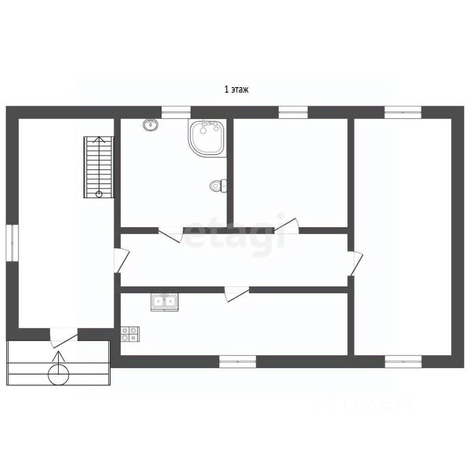 1 этаж: раздельный санузел, прихожая, комната, кухня-гостиная (сейчас используется как бильярдная).