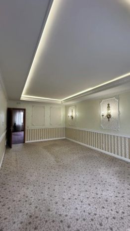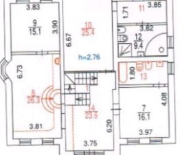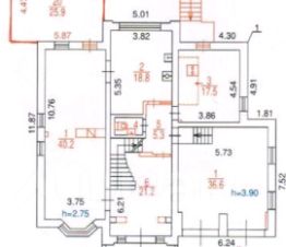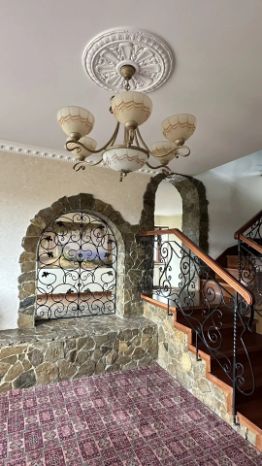Площадь — 482 м². Три этажа + цоколь. Кирпич, монолит, газоблок. Построен в 2000 году, все инженерные системы работают. Ремонт делали давно, но он сохранил актуальность.
