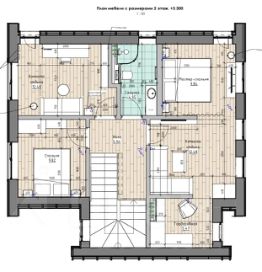 - 2 этаж: три спальни, одна из которых это мастер спальня со своей гардеробной и комнатой отдыха, санузел, общий холл.
