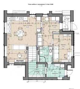 - 1 этаж: прихожая, просторная кухня-гостиная, кабинет, санузел, бойлерная.
