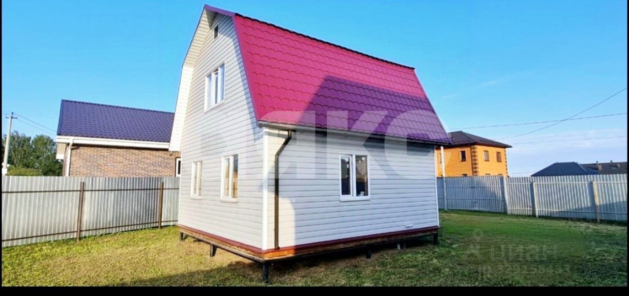 Адрес: ул. Заречная, 15, пос. Спартак, 17 км от МКАД. Дом: 58 м², 2 этажа, каркасная технология, ИЖС. Участок: 5 соток, огорожен забором, есть калитка и въездные ворота.
