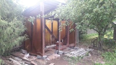 КОММУНИКАЦИИ: скважина на участке (в дом вода не заведена), колодец общий 50 метров от дома, туалет - на улице обычный, деревенский, газ подведён к участку и можно завести в дом, электричество заведено в дом, печь голландка с варочной панелью.