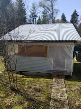 каркасный дом 5,5х9,5 с большой террасой . общий размер с террасой 8х9. 2 этажа, 3 спальни. баня из бруса 3х6. имеется сарай до хранения инвентаря. участок находится на краю с лесом, тихо, красиво и свежо .
