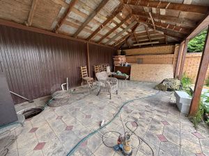 Два гаража с прямым проходом в дом, крытый задний двор, три заезда на участок, во дворе 5 машиномест, 2 благоустроенные беседки, плоносящий сад.