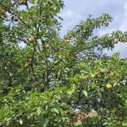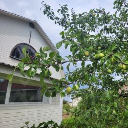 На участке разнообразие плодовых деревьев очень вкусные груши, сливы, облепиха, чёрная смородина, шиповник, яблоня. Тихие спокойные соседи.