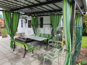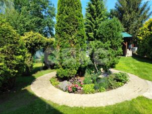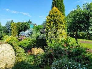 Расположен на 26 сотках ухоженного ландшафтного участка, окруженного декоративными и плодоносящими деревьями. Участок обнесен надежным капитальным забором, посреди которого растут величественные туи и барбарис. Внутри спроектирован уютный сад с водоемом, баней по индивидуальному проекту с панорамным остеклением, теплицей в английском стиле и множеством декоративных элементов. Здесь есть всё для спокойствия и уединения, а возможность насладиться природой — буквально у вас под рукой.