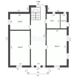 1 этаж — входная группа, холл, кухня-гостиная (просторная зона для приёмов), гостевая комната, спальня, санузел, котельная.