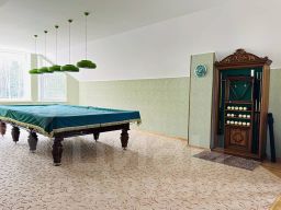 • Бильярдная (70 кв.м.): великолепное пространство с панорамными окнами и завораживающим видом на лес.