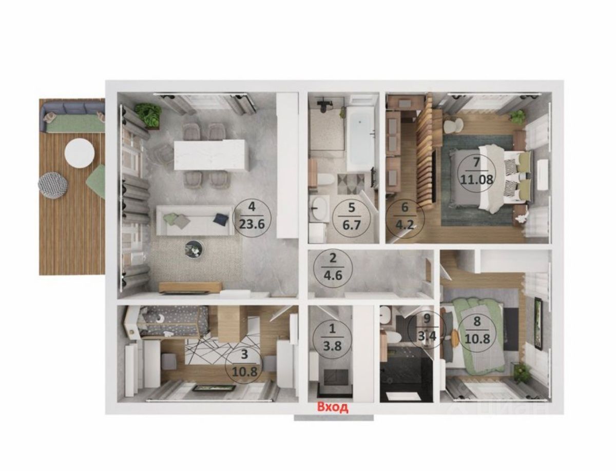 3 спальни