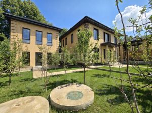 Продуманный ландшафтный дизайн: дорожки из брусчатки, газон, лиственные и вечнозелёные насаждения. Въезд — асфальт, внутри посёлка — дорога из асфальтовой срезки (отличное состояние).