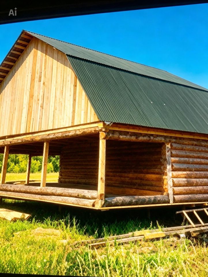 Дом 117 кв м на сваях из качественного псковского бревна диаметром 30 см ( отличается долговечностью и отсутствием короеда), два этажа и две больших террасы. Основное строительство готово - остались внутренняя отделка и благоустройство.