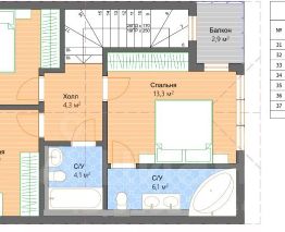 2 этаж - мастер спальня с отдельным с/у, 2 спальни, с/у, балкон.