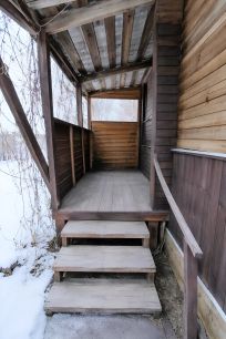 С первого на второй этаж ведет крепкая деревянная лестница.