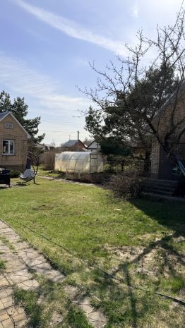 Участок 8 соток, огорожен, весь ухожен, с различными посадками, деревья, туи, сосна, выложены бетонные дорожки, парковочное место для машины. На участке имеется гостевой дом построен из блоков, обложен кирпичом, окна ПВХ, фундамент ж/б блоки, с отделкой. Имеет две комнаты, коридор, электричество заведено.