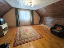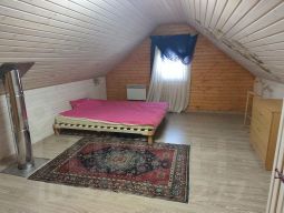 Гостевой домик - из бревна, 1 этаж комната с печью 16 кв.м. и кухня 4 кв.м., санузел 4 кв.м., второй - жилая комната 20 кв.м. Открытая терраса около 10 кв.м.