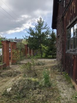 Участок 9 соток огорожен кирпичным забором, есть хоз постройка, беседка, колодец, баня. На участке плодовые деревья и кустарники.