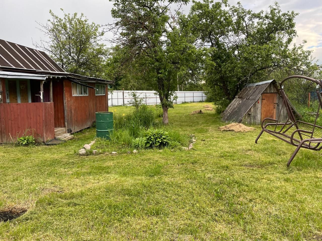 Участок разделен на 2 части. Одна часть участка огорожена забором, на ней зрасположена летняя беседка с террасой. Также на участке имеется погреб, летний туалет. Вторая часть участка забором не огорожена, использовалась под выращивание картофеля. Цена: 1 200 000. Торг уместен. По всем вопросам пишите и звоните.