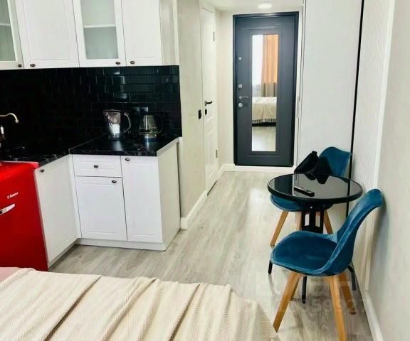 Это двухуровневая квартира-студия, общей площадью 23 кв. М (площадь по полу 17 кв. М. + 6 кв. М. Второй уровень). Большие окна делают помещение светлым и уютным, а минимализм в интерьере создает ощущение простора несмотря на компактность апартаментов.