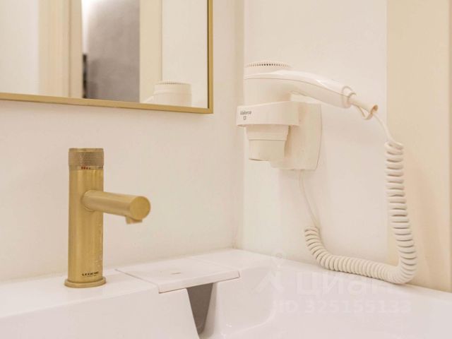 Одной из главных особенностей студии является ванная комната, в которой есть чугунная ванная прям у окна. Чугунная ванная хороша тем, что надёжно стоит и долго сохраняет тепло горячей воды. Берите планшет или книгу, бокальчик вина и расслабляйтесь после тяжёлого трудового дня Под раковиной есть стиральная машина. Объёма которой вполне хватит для бытовых нужд гостей. Для сушки можно воспользоваться полотенцесушителем. Девушки и длинноволосые парни особенно оценят встроенный фен Valera.