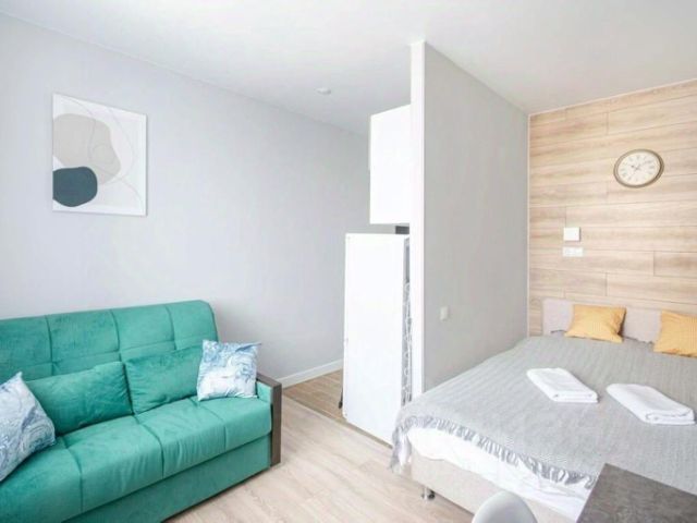 Студия полностью оборудована для комфортного проживания: телевизор, бесплатный Wi-Fi, стиральная машина, утюг, фен, варочная панель, чайник и микроволновка. Есть штопор и бокалы. Регулярная уборка профессиональной химией и дезинфекция от насекомых, а также смена белья на чистое и свежее проводятся перед каждым заездом.