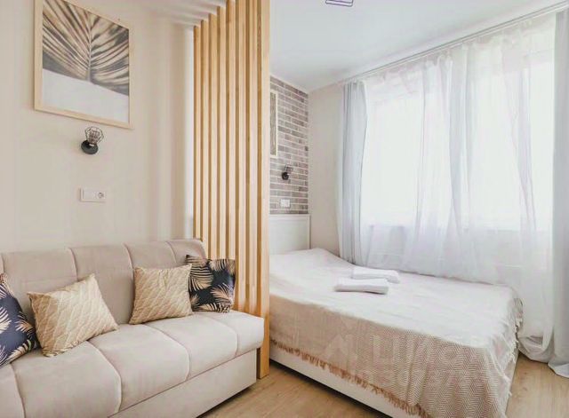 Студия полностью оборудована для комфортного проживания: телевизор, бесплатный Wi-Fi, стиральная машина, утюг, фен, варочная панель, чайник и микроволновка. Есть штопор и бокалы. Регулярная уборка профессиональной химией и дезинфекция от насекомых, а также смена белья на чистое и свежее проводятся перед каждым заездом.