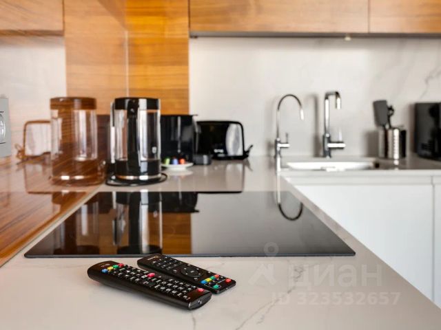 Для проведения вечеринок в апартаментах имеется стол-трансформер, за которым могут разместиться до 12 человек.