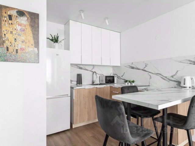 Квартира укомплектована кондиционером, вытяжкой, плитой, стиральной машиной, чайником, телевизором, холодильником, феном, утюгом и микроволновкой.