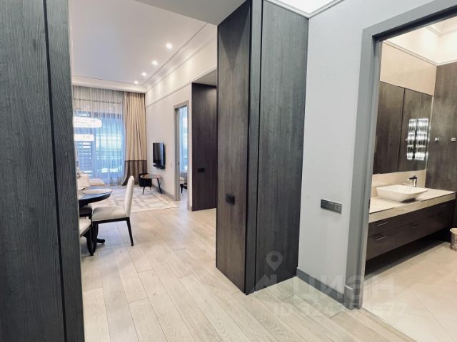 Сдаётся новая 1-комнатная квартира в ЖК HIDE, башня Riverside, новый ремонт, 2 телевизора, 2 гардеробных, стиральная машина и машина для сушки белья, посудомоечная машина, фильтр для воды, система умный дом, подключен домофон и электронная входная дверь с возможностью входа без ключа. Мебель делали на заказ.