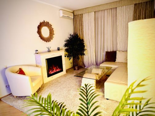 Стильный евроремонт с использованием качественных отделочных материалов, застеклённый и утеплённый балкон, стеклопакеты, два кондиционера, полы - паркет и плитка, беспроводной интернет, спутниковое ТВ с зарубежными каналами, камин. Со вкусом подобранная мебель из Италии: гостиная, прихожая, кухня, спальня - большая 2-х спальная кровать с итальянским ортопедическим матрасом и высококачественным постельным бельём. Кожаный диван в гостиной, раскладывающийся до размера полноценной двухместной кровати. Встроенный итальянский кухонный гарнитур с полным набором современной бытовой техники премиальных европейских брендов - новая стиральная машина AEG с функцией сушки, пиролитический духовой шкаф Siemens, новая посудомоечная машина Bosch, микроволновая печь Panasonic, капсульная кофемашина Nespresso, мультиварка, тостер Philips. Новый набор фарфоровой столовой посуды из Англии, хрустальные бокалы для вина, коньяка, воды от лучших итальянских производителей. Совмещённый санузел с новой качественной сантехникой и смесителями Grohe, бойлер.