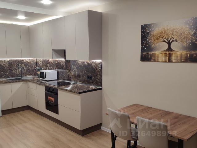 Имеется большой телевизор (диагональ 65"), мебель для комфортного проживания: большая кровать с ортопедическим матрасом, подушками, двумя теплыми одеялами и водонепроницаемым наматрасником в уютной спальне, современный вместительный шкаф в отдельной гардеробной с зеркалом, удобные тумбочки в гостиной и зеркальный шкаф-купе в прихожей, раскладной диван в гостиной и удобный круглый обеденный стол со стеклянной столешницей и 4-мя стульями.
