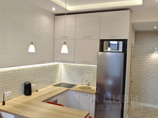 - встроенная кухня оснащенная двухкамерным холодильником, встроенной посудомоечной машиной, встроенной микроволновой печью, индукционной электроплитой, капсульная кофемашина, электрочайник, полный набор посуды и столовых приборов, пол плитка.