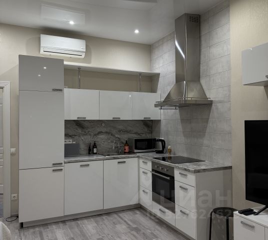 Квартира после косметического ремонта, санузел совмещен, на кухне кухонный гарнитур с единой столешницей и встроенной бытовой техникой (эл.сенсорная варочная панель, духовой шкаф, стиральная машина, мойка из гранита), в комнате кондиционер.