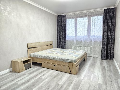 В спальне: кровать 1,4, удобный матрац с независимыми пружинами, прикроватная тумба, трехстворчатый шкаф с зеркалом.