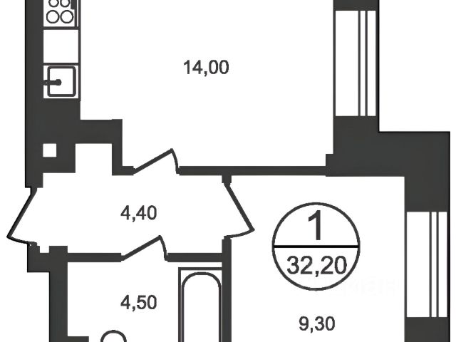 Сдается в долгосрочный найм (аренду) 1комнатная квартира (33.2 м2) в современном монолитном доме.