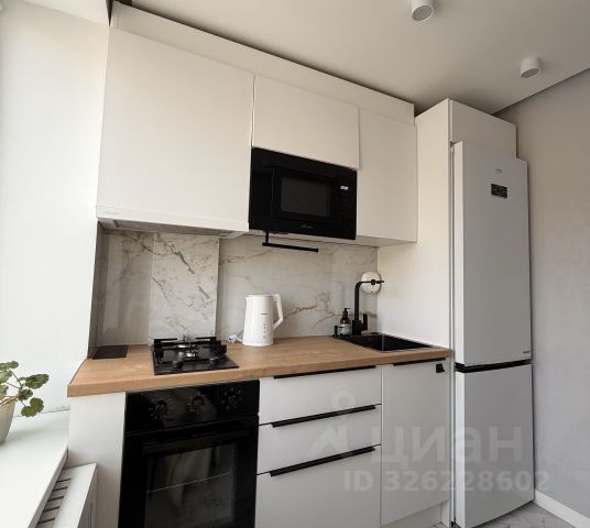 Общая площадь составляет 32 кв. м, жилая площадь — 22 кв. м, кухня — 6 кв. м. Высота потолков — 2.6 метра. Окна выходят во двор, поэтому вас не будут беспокоить шумные улицы.