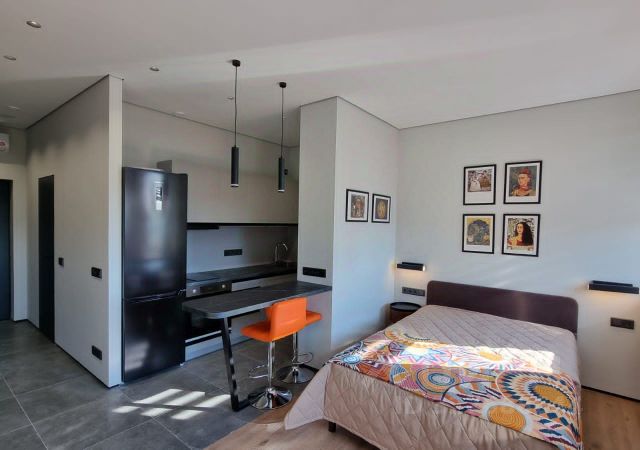 В комнате удобные шкафы, учебно-рабочее место, раскладной большой двухспальный диван и отдельная кровать для ребенка или отдыха, кондиционер, разные зоны света.