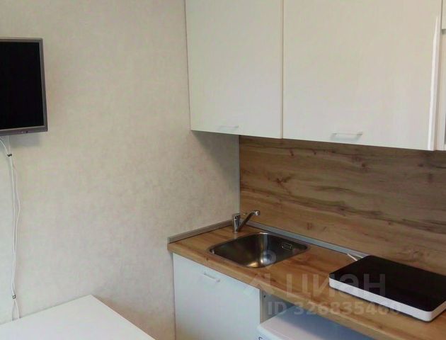 Апартаменты (студия) на длительный срок с собственным санузлом (душевая кабина, раковина, унитаз); полностью меблирована: полутороспальная спальная кровать (матрас 20 см), стол, стулья, шкаф, зеркало, полки, шторы, холодильник, рядом в коридоре - общая кухня с современными плитами и мойками, есть стиральная машина.