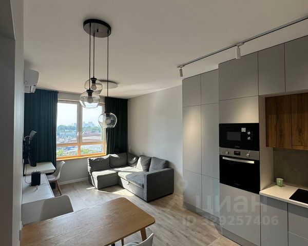Уютная дизайнерская квартира с панорамными видами в 7 минутах от метро (ЖК Life Варшавская) Характеристики квартиры: Планировка: кухня-гостиная + изолированная спальня. Ремонт: дизайнерский. Кухня-гостиная (22 кв.м): встроенная кухня с техникой (варочная панель, духовой шкаф, вытяжка), диван, панорамные окна. Спальня (15 кв.м): двуспальная кровать с ортопедическим матрасом, шкафы. Санузел: совмещённый, с ванной. Стиральная машина, системы хранения. •Прихожая с вместительным шкафом, зеркало. Локация и инфраструктура: Метро Варшавская — 7 минут пешком. В пешей доступности: магазины, кафе, аптеки, банки, детские сады и школы..