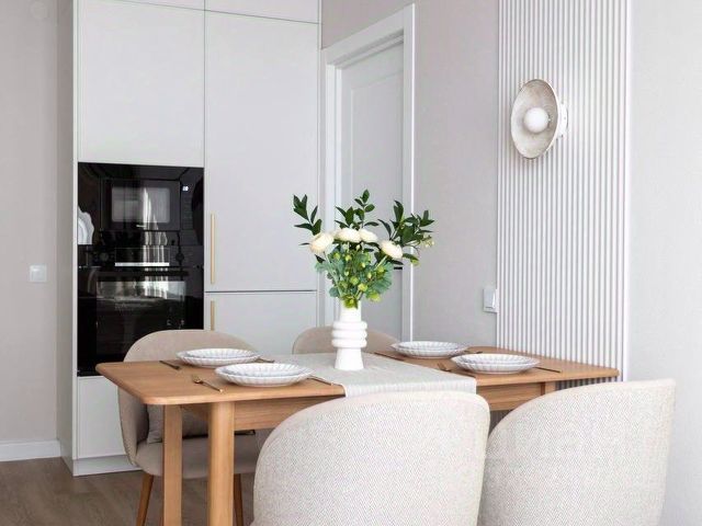 Бытовая тeхника: кондиционер,стиральная машина,посудомоечная машина,холодильник, варочная панель, телевизор, электрический чайник,духовой шкаф с функцией СВЧ. Есть все необходимое для комфортного проживания, в т.ч. посуда и постельное белье, столовые приборы, утюг,гладильная доска,предметы интерьера, ванные принадлежности.