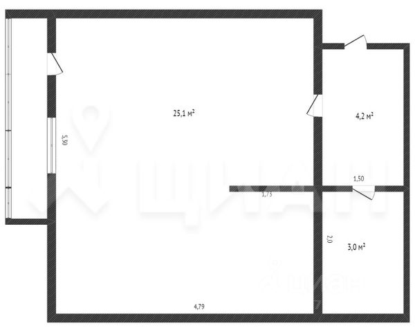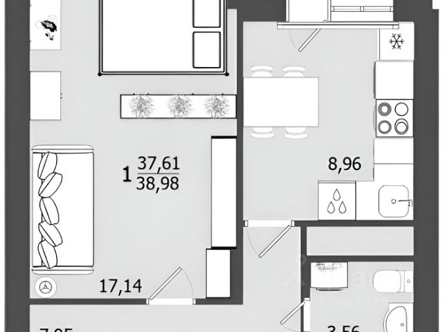 От года, комм. платежи включены (без счётчиков), без комиссии, залог 43 000 ₽
