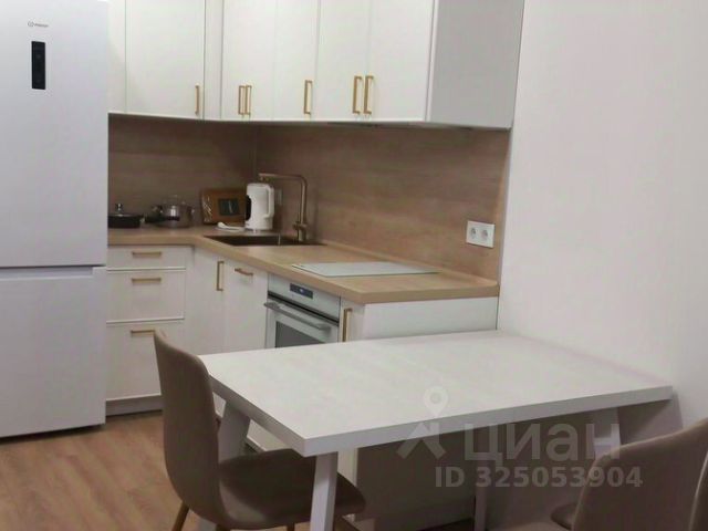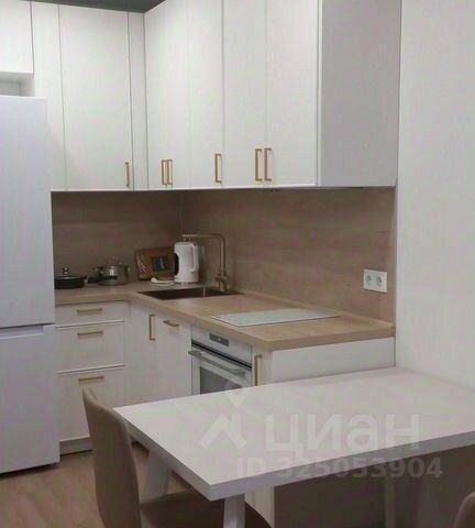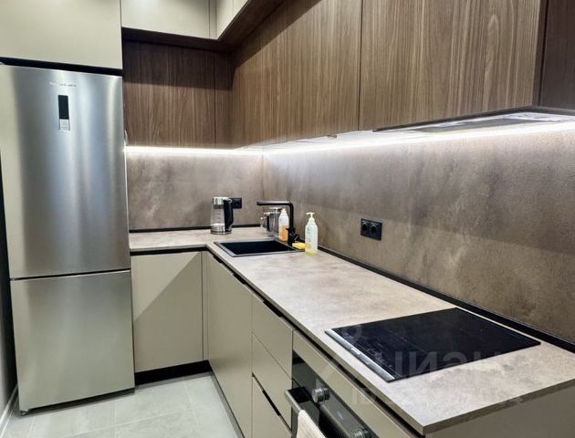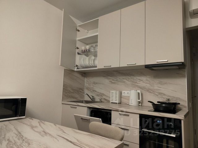 Бытовая техника: холодильник, варочная панель, СВЧ печь, духовой шкаф, посудомоечная машина, телевизор, стиральная машина.