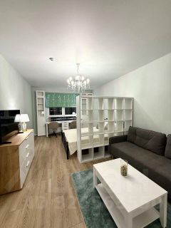 Ищете уютную квартиру в новом доме с современным ремонтом? Обратите внимание на это предложение! Просторная однокомнатная квартира площадью 45 кв. м расположена на 33-м этаже 33-этажного дома, построенного в 2024 году. В квартире есть все необходимое для комфортной жизни, включая стильный евроремонт и удачное расположение окон, выходящих на улицу, что гарантирует много света и свежего воздуха. Квартира полностью оборудована современной техникой: кондиционер, холодильник, посудомоечная машина, телевизор и стиральная машина. Просторная кухня площадью 20 кв. м с мебелью создает уютную атмосферу для семейных ужинов.В ванной комнате установлена ванна, что позволит вам расслабиться после долгого дня. В комнате также есть вся необходимая мебель для комфортного проживания. Дом оснащен двумя пассажирскими и двумя грузовыми лифтами, что обеспечивает удобный доступ даже с крупногабаритным грузом. Подземная парковка решает вопрос с размещением автомобиля. В шаговой доступности находятся школы, детские сады, клиники и магазины, поэтому можно легко удовлетворить все бытовые потребности. До ближайшего метро — всего 12 минут пешком, что делает это место особенно привлекательным для тех, кто ценит удобство и мобильность. Рассмотрим порядочную семью, одну девушку или парня. Строго без животных.