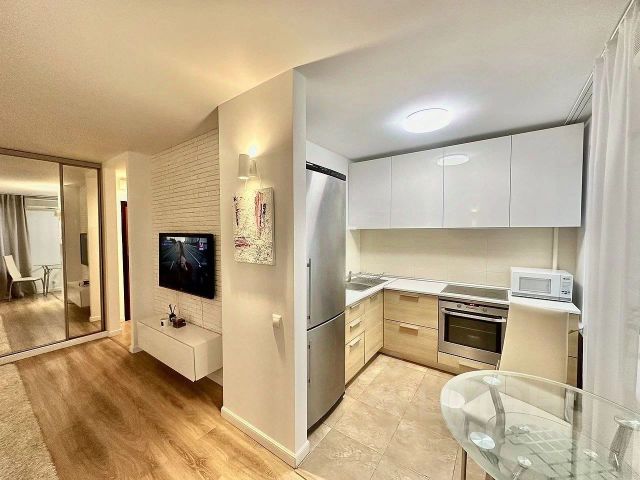 Сдается на несколько месяцев или более длительный срок отличная уютная 1-комнатная студия в самом центре Москвы, рядом с Патриаршими прудами и улицей Тверской центральной улицей Москвы, в пешей доступности от основных культурных и исторических достопримечательностей центра города. Студия расположена в 5-ти этажном кирпичном доме на 1 этаже. Закрытый зеленый, тихий двор, оборудованный детскими и спортивными площадками, тренажерами, теннисным столом. Во дворе есть своя парковка со шлагбаумами. Общая площадь студии 16 кв. м. Жилая площадь 14 кв. м. Сделан новый евроремонт. Студия полностью обустроена и меблирована для комфортной жизни. Светлая комната, с уютной обстановкой, большим двуспальным диваном. Кухонная зона оснащена всем необходимым для комфортной жизни, с бытовой техникой (плита, духовой шкаф, микроволновая печь, вытяжка, холодильник). Ванная комната оборудована душевой кабиной, новой импортной сантехникой и плиткой. Металлическая дверь, домофон. Стеклопакеты. Напольное покрытие: плитка, ламинат. Благоустроенный чистый подъезд и двор. Район с отлично развитой деловой, торговой, культурной и развлекательной инфраструктурой. В районе много зеленых насаждений, парков и скверов для отдыха и прогулок. В пешей доступности все прелести городской жизни в центре - разнообразные театры, выставки, различные музеи, зоопарк, планетарий, кафе и рестораны. До Красной Площади 10 мин. транспортом или 20 мин. неспешным прогулочным шагом. Идеальная студия для комфортной жизни в самом центре Москвы! Сдаю жильё рядом с метро Краснопресненская на длительный срок.